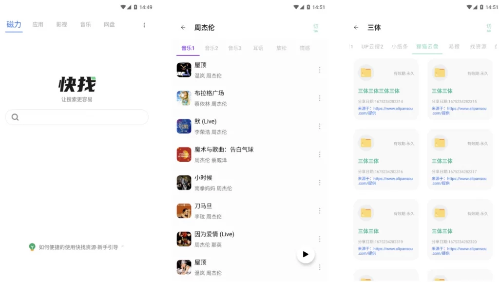 - 双核心搜索功能:聚合音乐搜索 + 网盘搜索,一个 APP 搞定两类资源查找,无需切换多平台;
