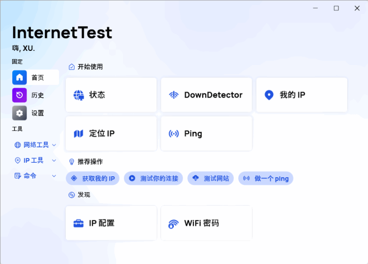 InternetTest Pro 是一款专为 Windows 打造的全能网络诊断工具,集网速测试、连接监控、DNS 查询、路由追踪、WiFi 信息、IP 定位、密码恢复等功能于一体,界面现代化、操作简单,适合日常网络排障与测速。