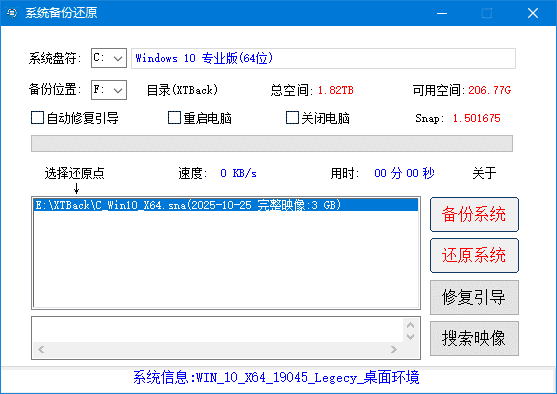 SnapShot备份还原是新起点大佬基于SnapShot制作的一个系统备份还原工具,界面简洁,使用方便,还带有系统引导修复功能。