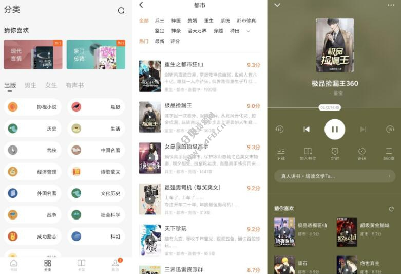 - 看书听书双模式:支持阅读与听书自由切换,听书模式解放双眼,适配碎片化场景。