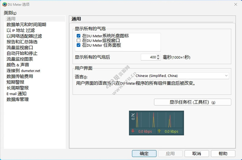 可在系统托盘中显示实时网络流量图标,方便随时查看网络状态。